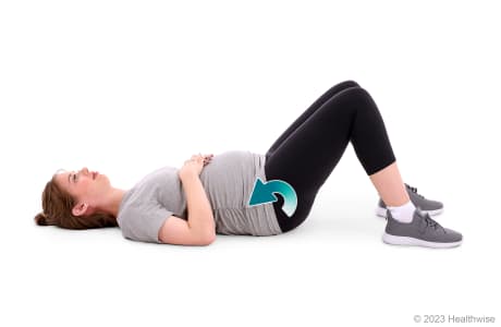 - Gently flatten your lower back against the floor by tightening your abdominal muscles and tilting your pelvis upward.