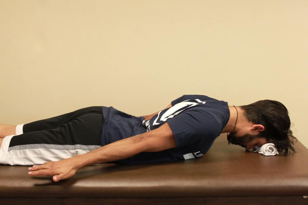 - Extend your arm behind you, pressing your hand or palm against a wall.