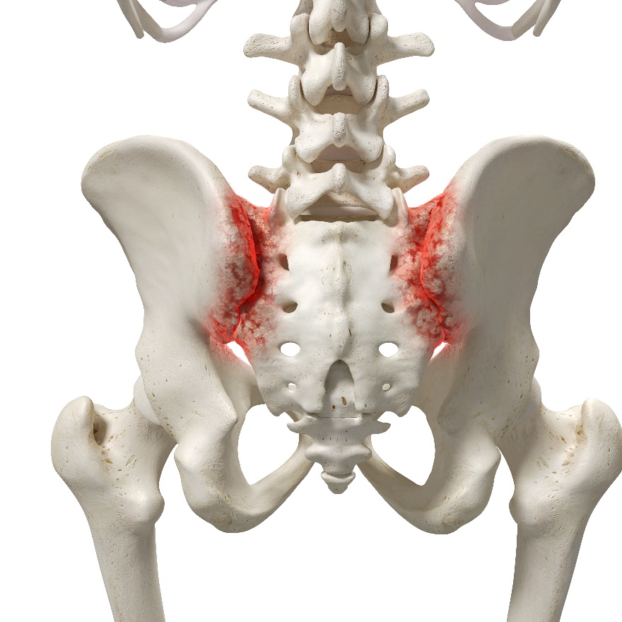 The Sacroiliac (SI) Joint is located where the base of your spine (the sacrum) meets your pelvis (the ilium).