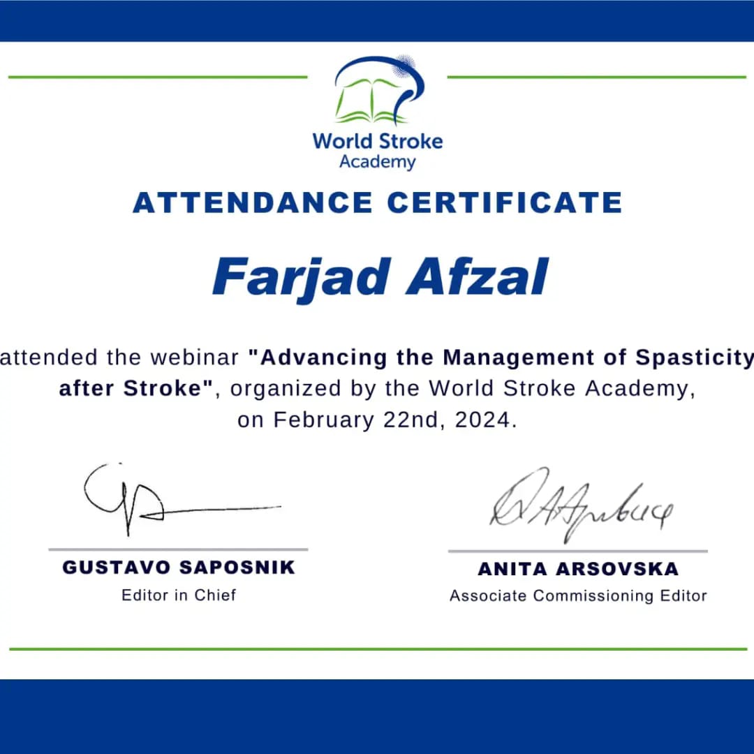 Dr. Farjad Afzal holds a Transitional Doctor of Physical Therapy (T-DPT) and an MPhil from the University of Health Sciences, Lahore, Pakistan. He previously earned his Bachelor in Physiotherapy (BSPT) from King Edward Medical University, Lahore. Dr. Afzal also served as a pediatric physical therapist at COMPASS.